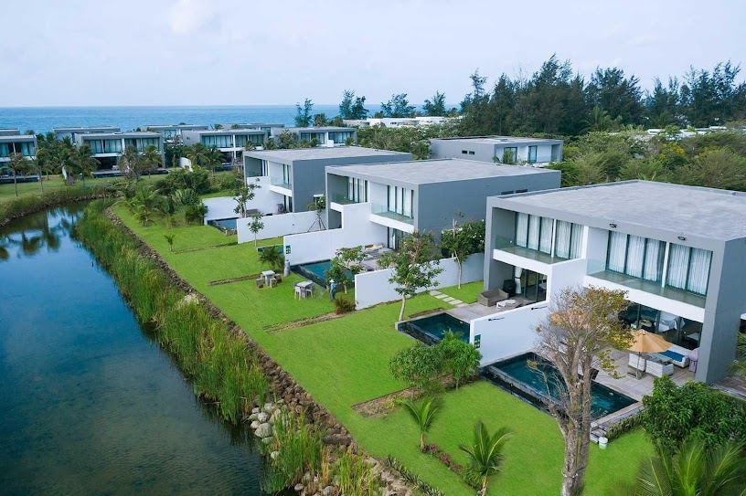 Mỗi biệt thự đều được thiết kế sang trọng, hiện đại với 4-5 phòng ngủ, bao quanh là thiên nhiên xanh mát và hồ nước ngọt nhân tạo. Nơi đây không chỉ đẹp mà còn cung cấp nhiều tiện ích hấp dẫn như bãi biển riêng, hồ bơi, khu vui chơi trẻ em, và các hoạt động thể thao như chơi tennis hay chèo kayak.