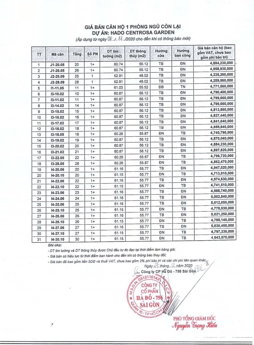 Giá Bán Căn Hộ Hà Đô Centrosa