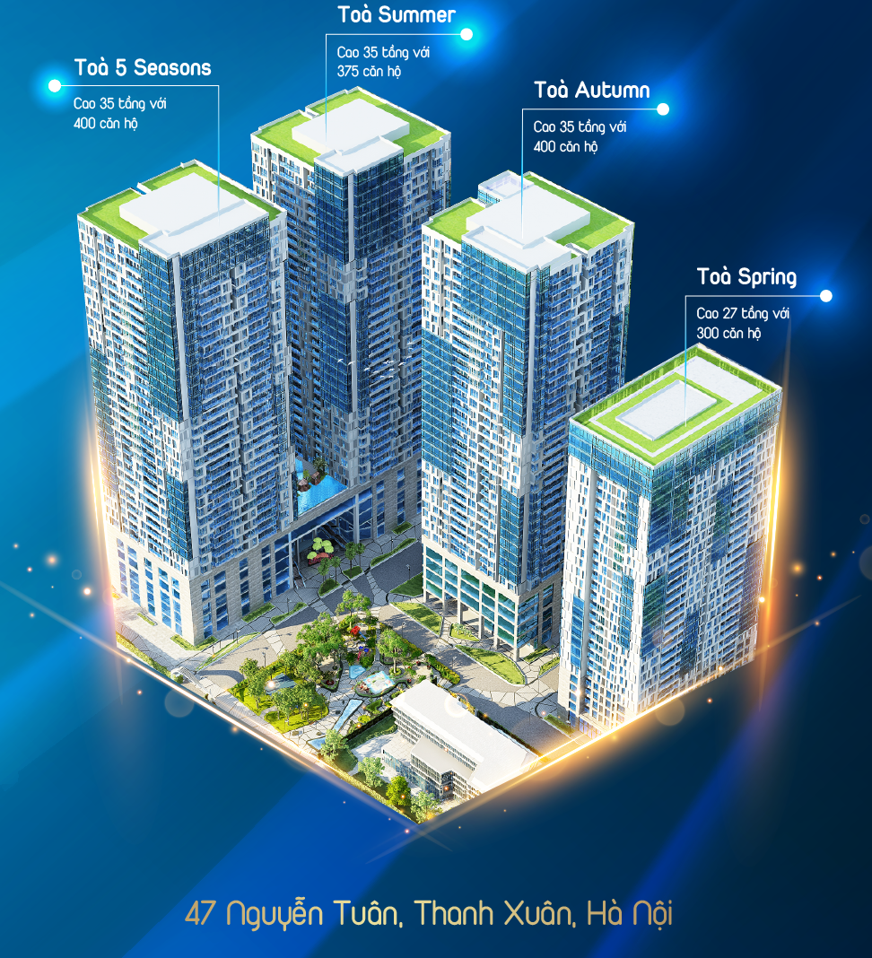 GoldSeason được thiết kế với 4 tòa nhà cao từ 27 đến 35 tầng, bao gồm các căn hộ đa dạng từ 2PN đến 3PN, đáp ứng nhu cầu của từng gia đình. Mỗi căn hộ đều được bố trí hợp lý và hiện đại, tạo không gian sống thoải mái cho cư dân.
