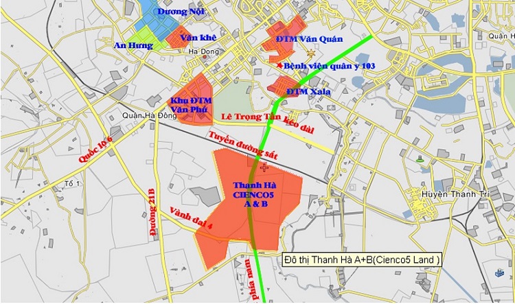 Khu đô thị Thanh Hà Mường Thanh nằm ở vị trí vàng giữa phường Kiến Hưng và Phú Lương, quận Hà Đông, Hà Nội. Dự án được xây dựng trên một diện tích rộng lớn lên đến 416,7 ha, bao gồm nhiều loại hình bất động sản như liền kề, biệt thự và chung cư, đáp ứng tối đa nhu cầu của cư dân.