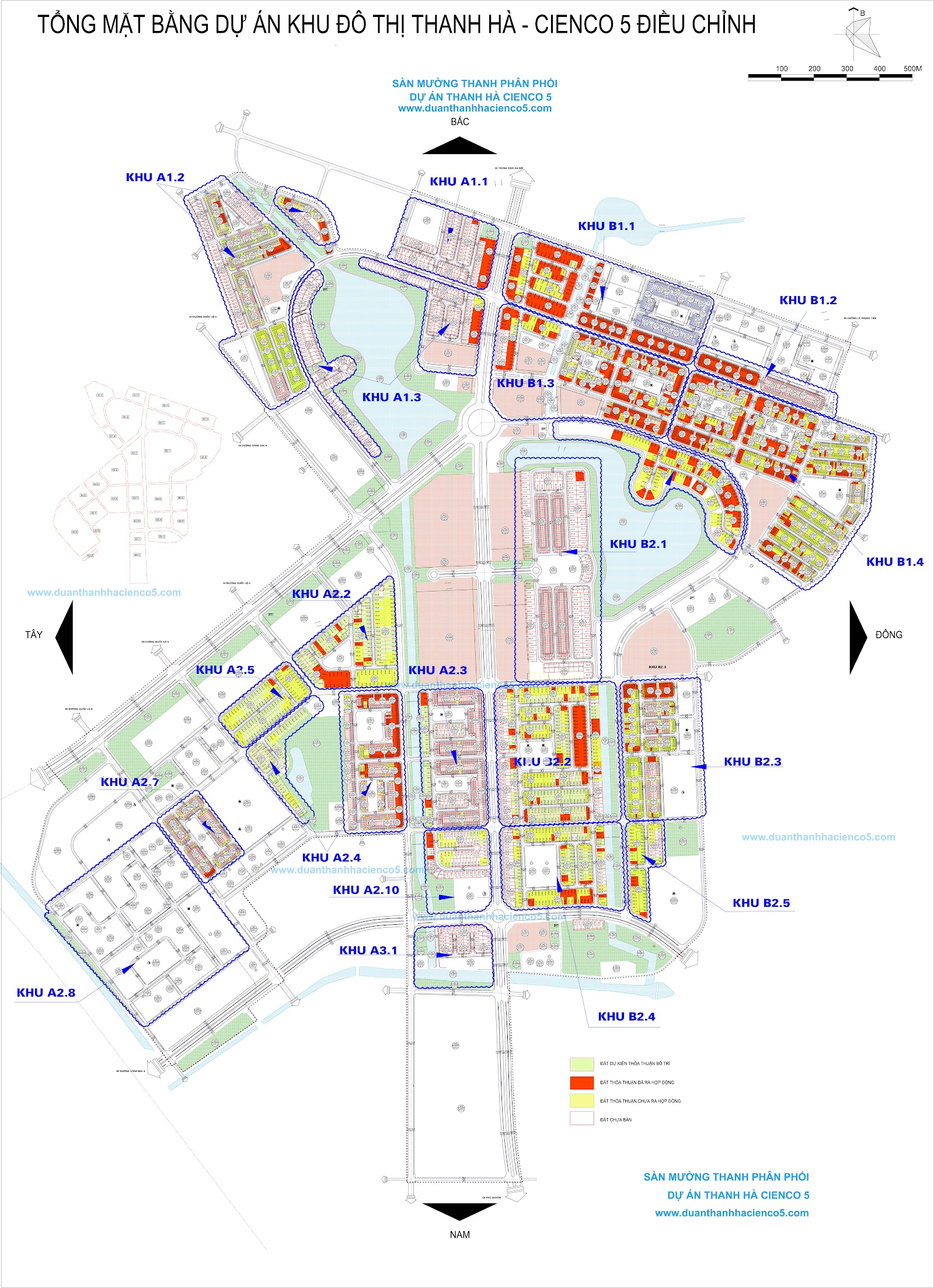 Khu đô thị Thanh Hà (Cienco 5 – Mường Thanh) là một trong những dự án quy hoạch lớn tại phía Tây Nam Hà Nội, với tổng diện tích lên đến 416 ha. Theo bản đồ quy hoạch tỷ lệ 1/500 mới nhất vào năm 2023, dự án này được chia thành hai khu chính là Khu A và Khu B, ngăn cách bởi trục đường phía Nam. Điều này giúp khách hàng dễ dàng hình dung và nắm bắt thông tin về từng phân khu.