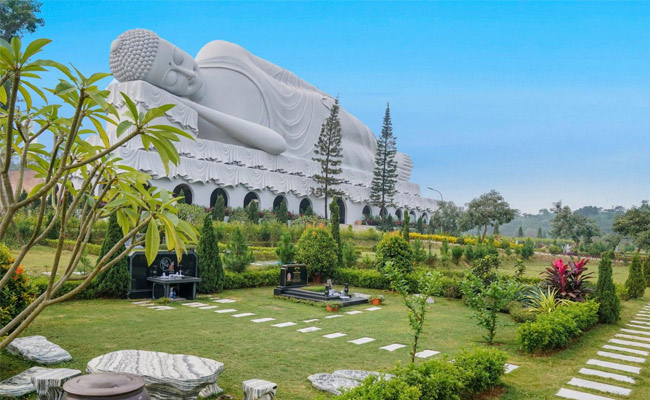 Điểm nhấn của công viên là tượng Phật A Di Đà cao 48m, cùng với kiến trúc tâm linh độc đáo, mang đậm bản sắc văn hóa Phật giáo. Với giá chỉ hơn 50 triệu đồng cho một mộ phần, Thiên Đức thực sự là sự lựa chọn lý tưởng cho các gia đình muốn tìm một nơi an nghỉ bình yên và tôn nghiêm cho những người đã khuất.