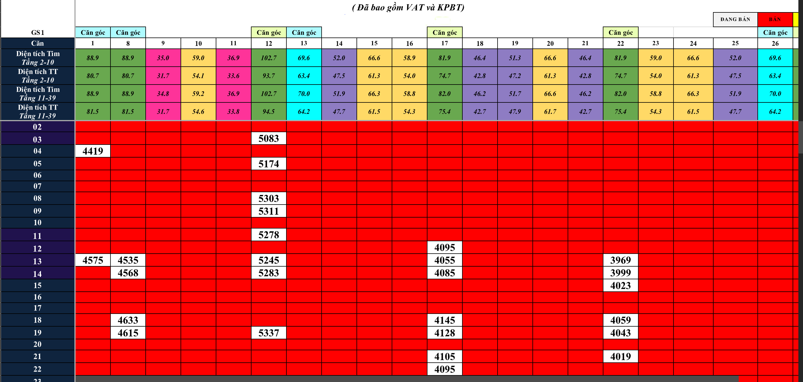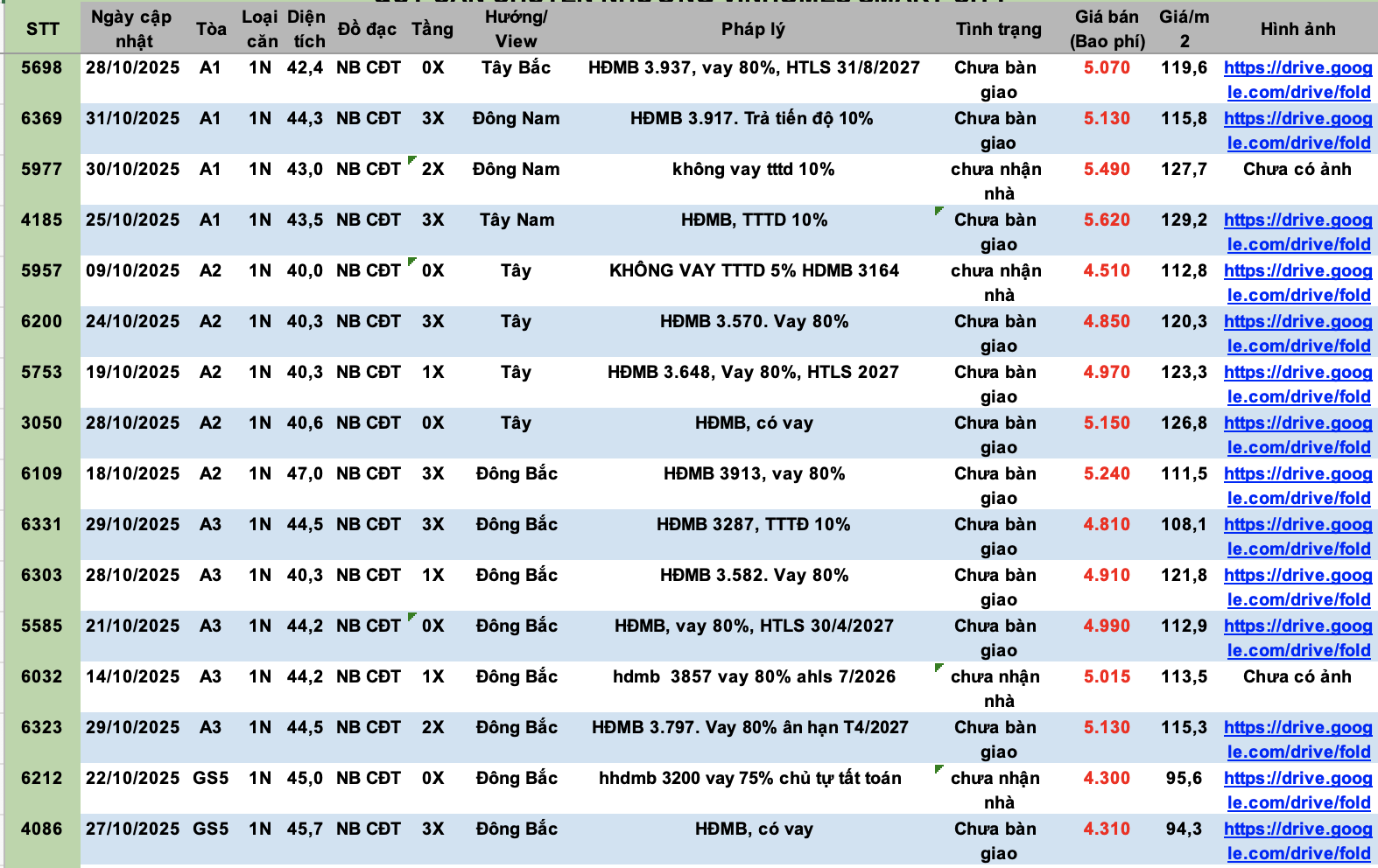 Mặt Bằng Giá Vinhomes Smart City
