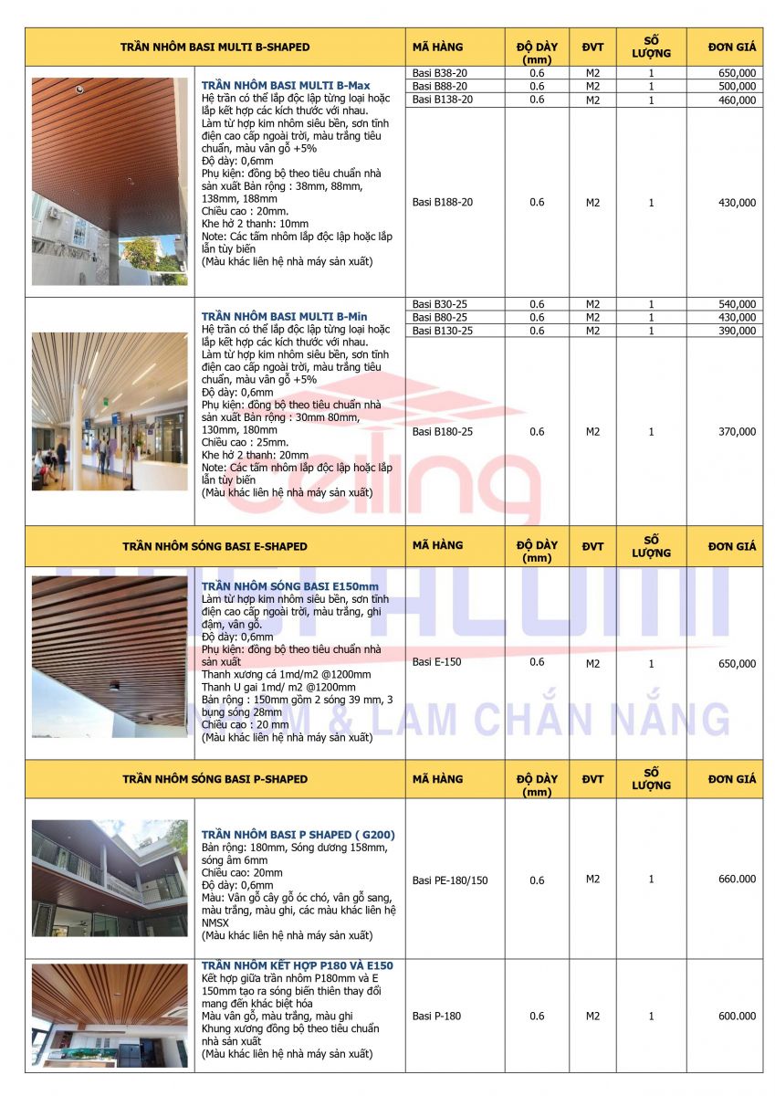 Trần nhôm Multi B-Shaped đang trở thành lựa chọn lý tưởng cho nhiều công trình nhờ vào thiết kế độc đáo và giá trị thẩm mỹ cao. Với bản rộng 30mm và độ dày 0.6mm, giá thi công cho loại này dao động khoảng 582.000 VNĐ/m², trong khi phiên bản có màu vân gỗ có mức giá 630.000 VNĐ/m². Thông tin chi tiết về bảng giá trần nhôm trong năm 2023 sẽ giúp quý khách dễ dàng chọn lựa sản phẩm phù hợp với nhu cầu và ngân sách.