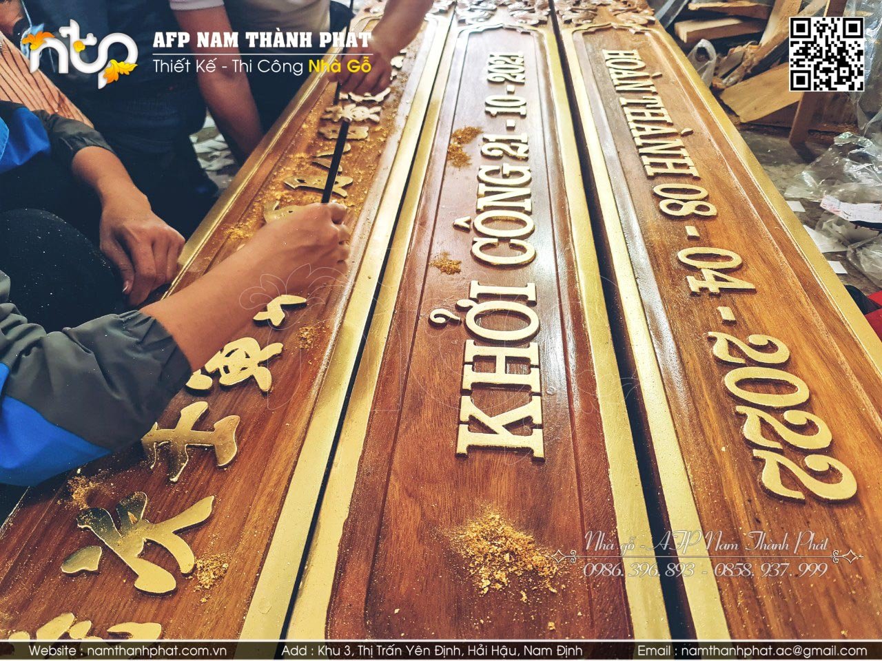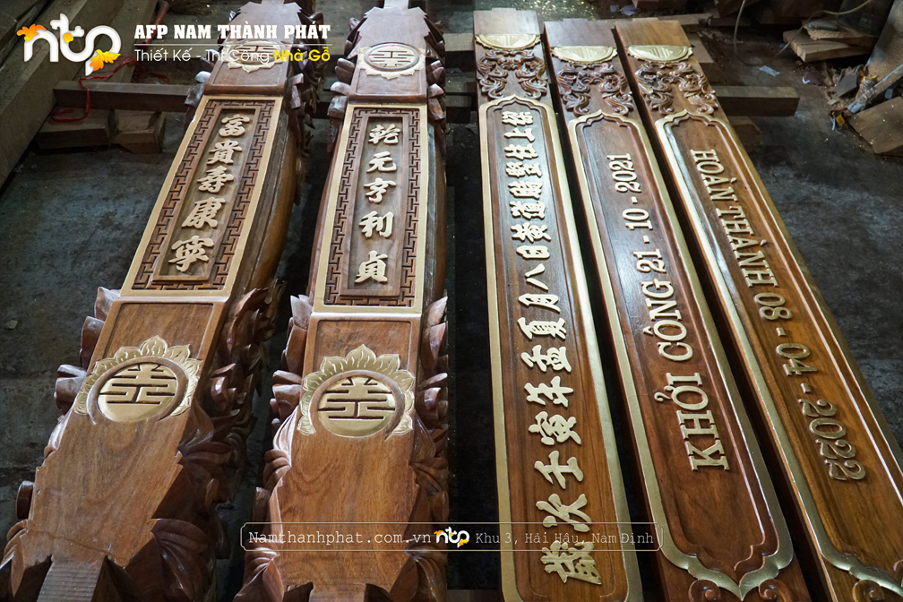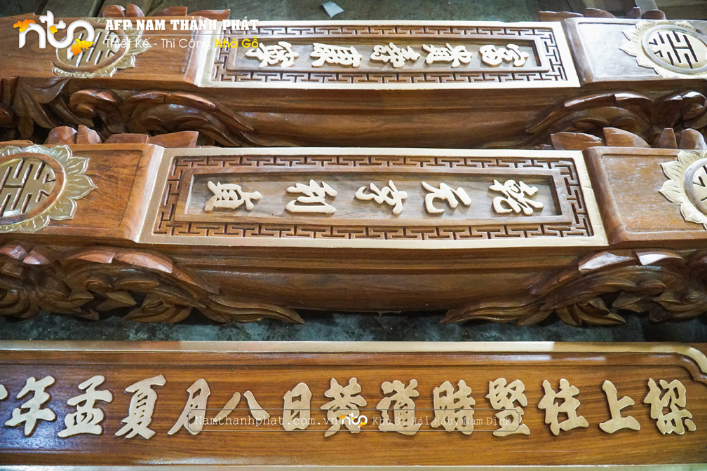 Việc chọn lựa chữ viết cho câu đầu và nóc nhà gỗ là một công đoạn cực kỳ quan trọng, thể hiện tâm ý của gia chủ. Tại công trình nhà gỗ Lim Lào ở Ninh Hiệp, nhà gỗ Phúc Lộc đã thực hiện công việc này với sự tỉ mỉ và cẩn trọng. Mỗi chữ viết trên thượng lương không chỉ là hình thức trang trí, mà còn ẩn chứa nhiều ý nghĩa văn hóa và tâm linh, gắn liền với những điều tốt đẹp mà gia chủ mong muốn cho con cháu.