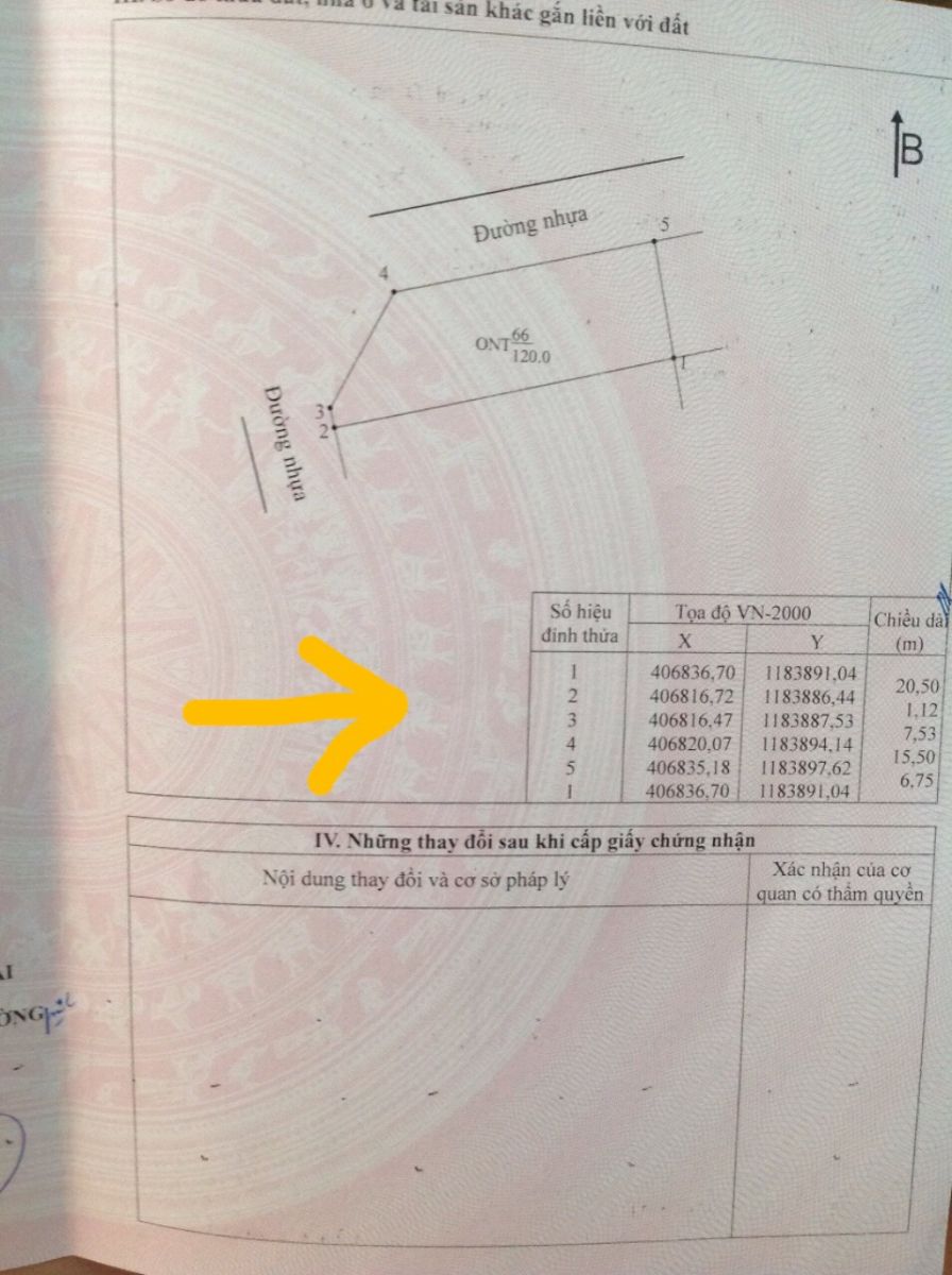 Khi đã vào ứng dụng, bạn sẽ cần xác định vị trí sơ đồ thửa đất trên sổ đỏ. Đặc biệt, hãy chú ý đến hệ tọa độ VN-2000, vì đây là hệ tọa độ được dùng để xác định vị trí chính xác trên bản đồ. Tiếp theo, bạn đọc các cặp tọa độ (X, Y) ghi trong giấy chứng nhận quyền sử dụng đất để có thông tin rõ ràng.