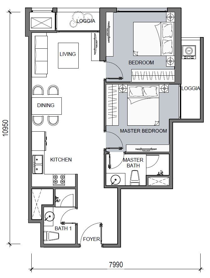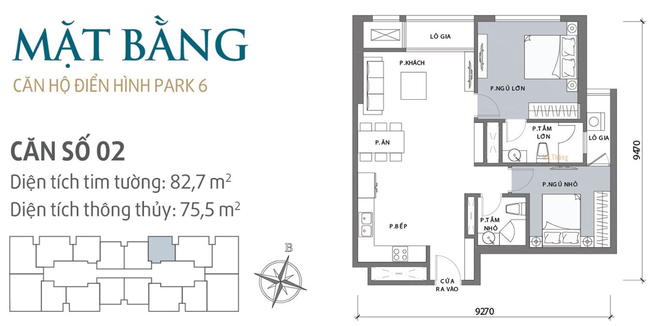Mặt Bằng Căn 2 Phòng Ngủ Park Hill