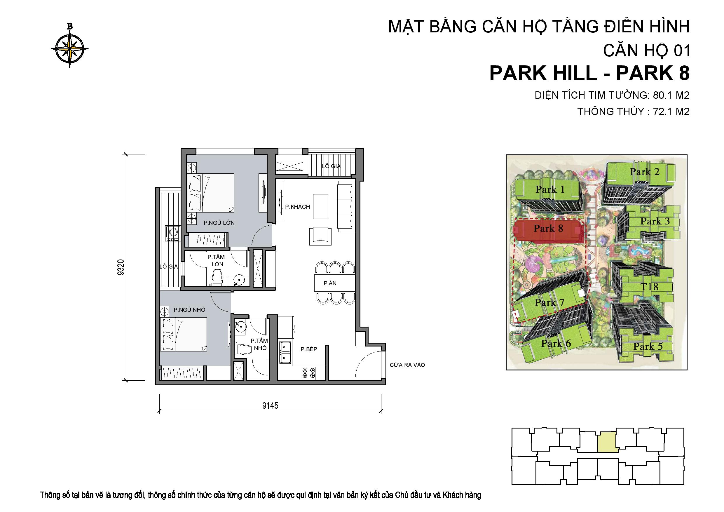 Diện Tích Căn 2 Phòng Ngủ Park Hill