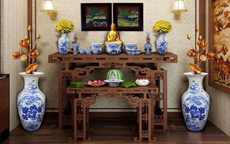 Ngoài ra, khi chọn bàn thờ, nên lưu ý kích thước vừa phải để đủ đặt các vật phẩm như bát nhang, lọ hoa, và đền thờ. Di ảnh cũng nên được đặt ở vị trí chính giữa, nếu không có ngai thờ, và theo nguyên tắc “Nam Tả Nữ Hữu” để mọi thứ đều được xếp đặt hợp lý.