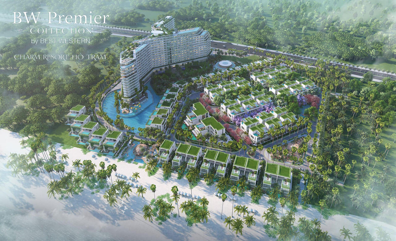 Với tổng diện tích xây dựng lên đến 40ha, Charm Resort Hồ Tràm hứa hẹn mang đến cho du khách một không gian nghỉ dưỡng cao cấp bên bờ biển xinh đẹp. Giai đoạn 1 của dự án, phân khu Best Western Premier Charm Resort Ho Tram, có quy mô 7,2ha, nằm trên cung đường biển dài tới 4km, tạo nên một bức tranh tuyệt vời.