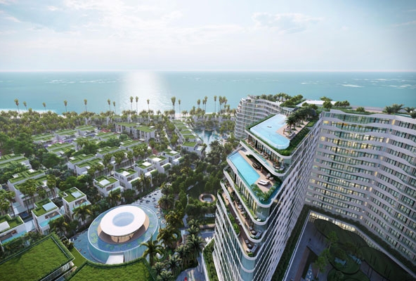 Dự án hứa hẹn cung cấp đến 1,086 căn hộ condotel cùng 18 biệt thự nghỉ dưỡng, tất cả đều được thiết kế với tầm nhìn ra biển và đẳng cấp, sang trọng. Bên cạnh đó, chất liệu mây, tre trong nội thất giúp không gian sống gần gũi với thiên nhiên, tạo cảm giác thư giãn cho chủ nhân.
