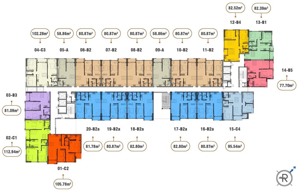 Một điểm đặc biệt là mỗi căn hộ đều được thiết kế hiện đại, tạo cảm giác thoải mái và gần gũi. Căn hộ 03 phòng ngủ cũng có nhiều lựa chọn hấp dẫn, như căn góc CHC1 với diện tích 111,04 m², hay những căn hộ rộng rãi khác với các kích thước từ 95 m² đến 102 m².