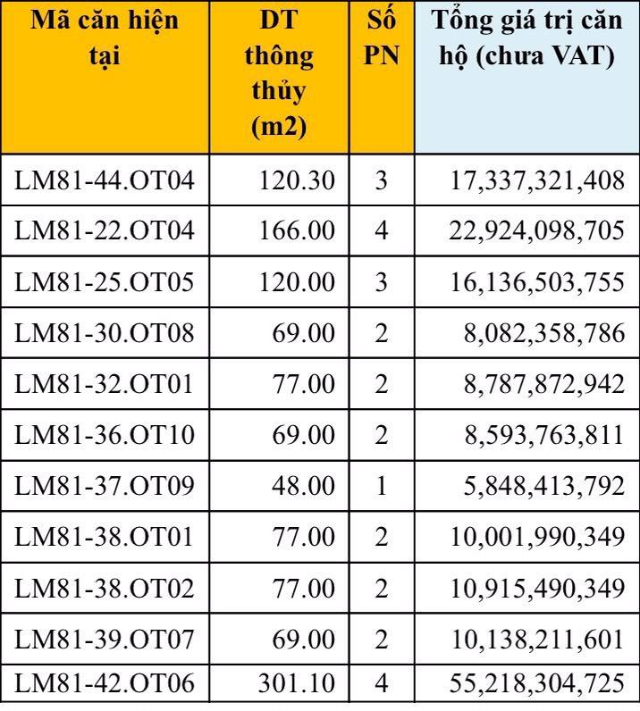Đặc biệt, căn hộ 3 phòng ngủ có mức giá thay đổi lớn, từ 16,05 tỷ cho đến hàng chục tỷ đồng tùy vào diện tích. Sự đa dạng này giúp người mua có nhiều lựa chọn hơn trong việc chọn không gian sống phù hợp.