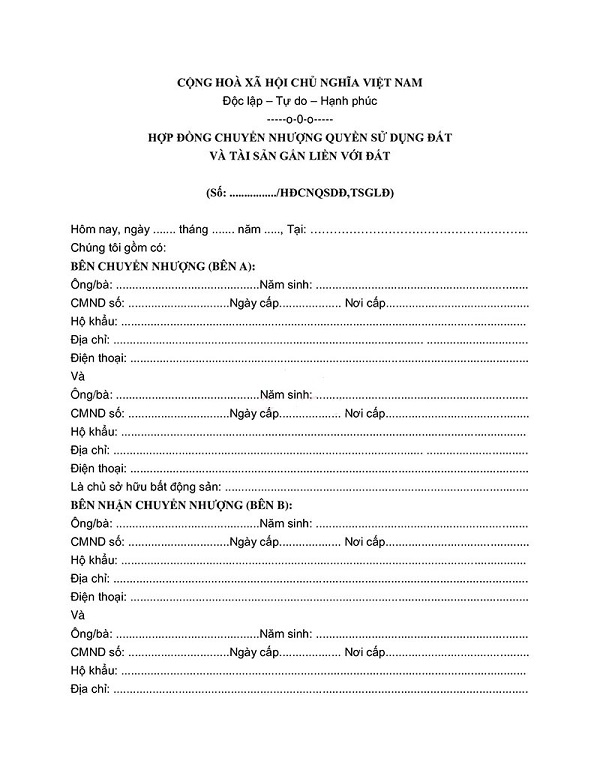 Mẫu giấy chuyển nhượng đất viết tay là một tài liệu quan trọng trong các giao dịch đất đai, đặc biệt khi chưa có sổ đỏ. Giấy này không chỉ thể hiện ý chí của các bên mà còn ghi nhận quyền và nghĩa vụ sử dụng đất. Để đảm bảo tính hợp pháp, giấy chuyển nhượng cần ghi rõ tên và địa chỉ của bên chuyển nhượng (Bên A) và bên nhận chuyển nhượng (Bên B).