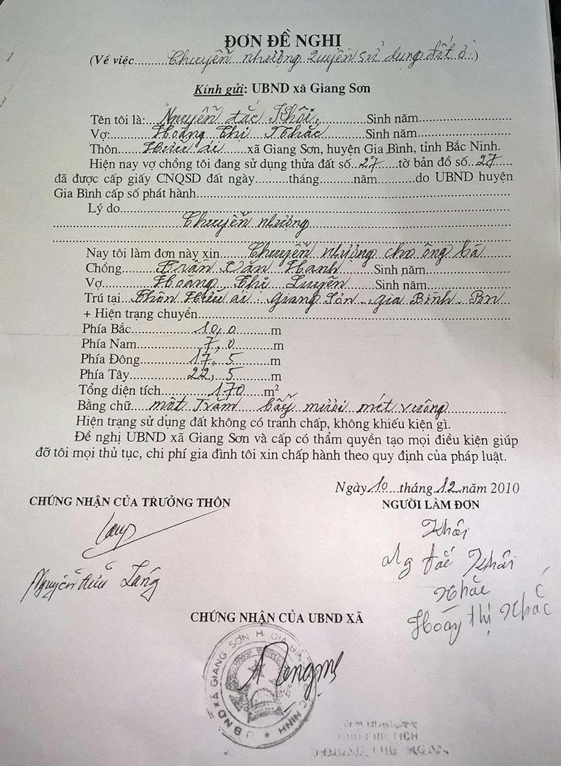 Sau khi chuẩn bị đầy đủ, bạn hãy nộp hồ sơ tại Văn phòng đăng ký quyền sử dụng đất thuộc Phòng Tài nguyên và Môi trường. Nếu bạn nhận tặng cho từ gia đình, việc công chứng hợp đồng vẫn là yếu tố bắt buộc. Cuối cùng, đừng quên đóng lệ phí sang tên để được cấp Giấy chứng nhận mới nhé! Mọi thứ sẽ diễn ra nhanh chóng nếu bạn làm đúng quy trình.