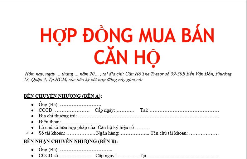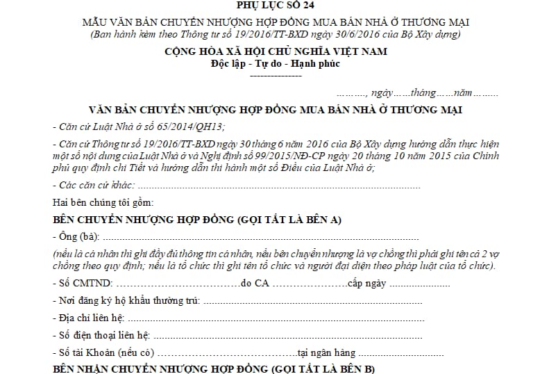 Mẫu hợp đồng chuyển nhượng nhà chung cư mới nhất
