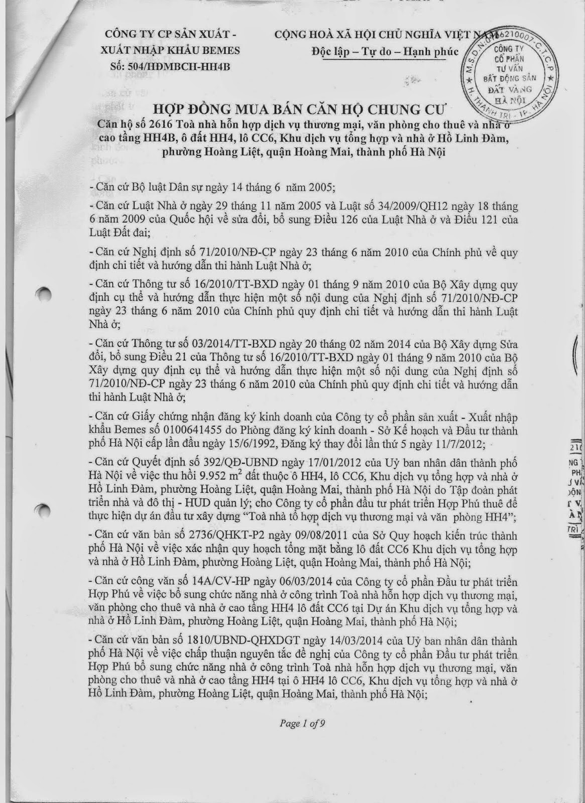 Hợp đồng mua bán căn hộ chung cư chính thức được ký kết