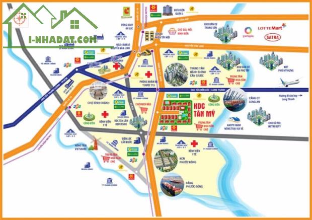 Khu dân cư Tân Mỹ tại Long An không chỉ sở hữu vị trí chiến lược mà còn là một nơi lý tưởng cho cuộc sống hiện đại. Nằm ngay trung tâm thành phố Đức Hòa, cư dân nơi đây dễ dàng tiếp cận các tiện ích thiết yếu như siêu thị, chợ và hệ thống trường học, từ tiểu học đến THPT, chỉ trong vòng bán kính 500m.
