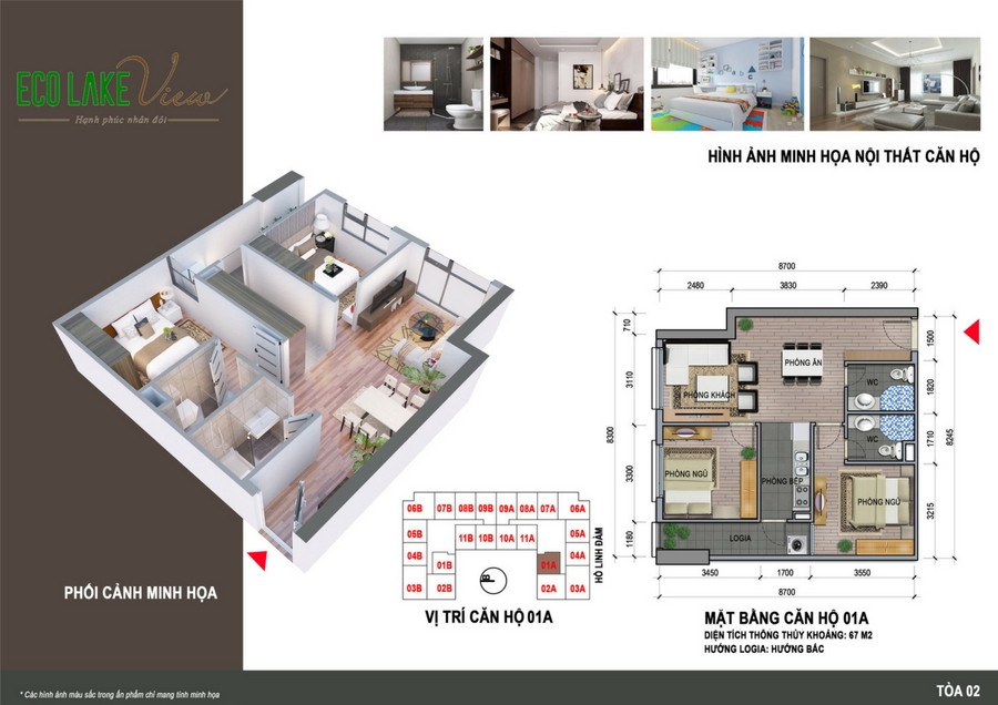 Đặc biệt, căn hộ số B02 được coi là căn góc lý tưởng với diện tích lên đến 100,90m2. Tại Eco Lake View, cư dân không chỉ được tận hưởng không gian sống tiện nghi với 2 ban công cho mỗi căn hộ, mà còn được sử dụng các tiện ích như bể bơi, sân golf và nhà xe 9 tầng. Tất cả đều hứa hẹn một cuộc sống thoải mái và hiện đại ngay giữa lòng Hà Nội.