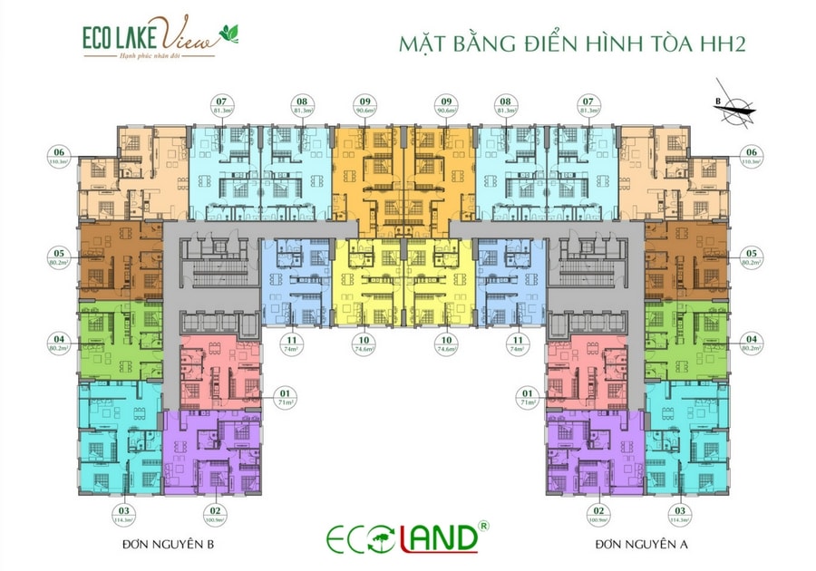 Chung cư Eco Lake View là một địa điểm lý tưởng cho những ai yêu thích không gian sống xanh và tiện nghi. Tòa nhà HH2, thuộc khu phức hợp này, nổi bật với chiều cao 32 tầng cùng 3 tầng hầm, được thiết kế với 2 đơn nguyên A và B, mỗi đơn nguyên có 11 căn hộ.