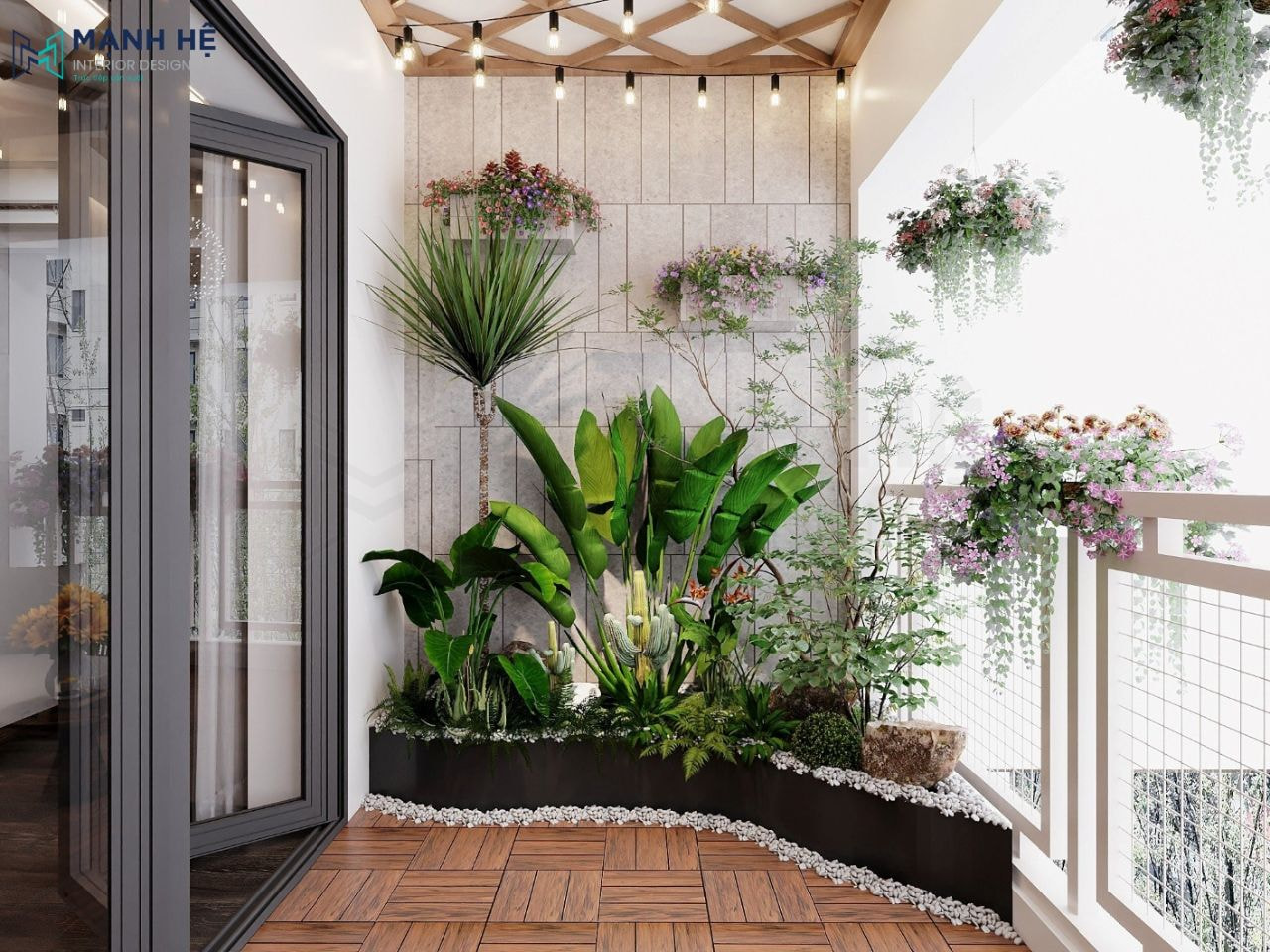 Cây cảnh và hoa cũng là yếu tố không thể thiếu trong việc trang trí ban công. Một góc nhỏ với chậu cây xanh, hoa nở rực rỡ không chỉ mang lại không khí trong lành mà còn đem đến sự hài hòa cho không gian sống. Bạn có thể tham khảo các mẫu ban công đẹp cho nhà ống, đẹp cho chung cư với những ý tưởng mới lạ để làm mới không gian sống của mình.