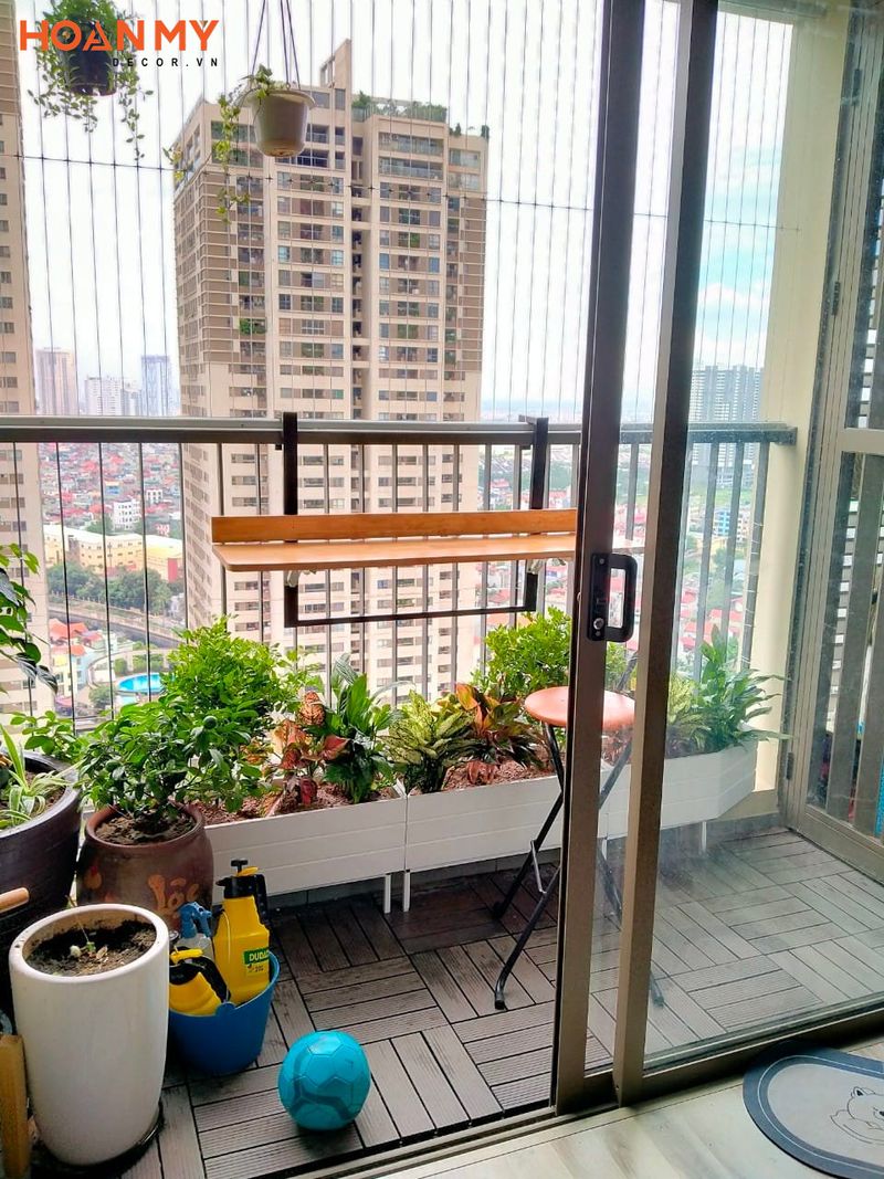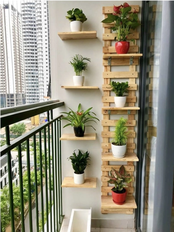 Ngoài ra, việc bố trí một vài chậu cây nhỏ trên kệ cũng mang đến nét sinh động cho không gian. Nếu bạn đang tìm kiếm những ý tưởng trang trí ban công sáng tạo và tiết kiệm chi phí, hãy tham khảo các dịch vụ từ Ban Công Xinh qua hotline 0972160960 hoặc fanpage để thêm cảm hứng cho ngôi nhà của mình.