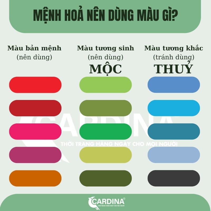 Trong phong thủy, màu sắc đóng vai trò quan trọng trong việc mang lại may mắn, tài lộc và cân bằng năng lượng cho mỗi người. Đối với người mệnh Hỏa, việc lựa chọn màu sắc phù hợp không chỉ giúp tăng vận khí mà còn hỗ trợ thuận lợi trong công việc, cuộc sống. Vậy, người mệnh Hỏa hợp màu gì nhất? Nên chọn những màu nào để phát huy tối đa năng lượng tích cực và tránh xa các màu sắc xung khắc? Hãy cùng tìm hiểu chi tiết trong bài viết dưới đây để biết cách ứng dụng màu hợp mệnh Hỏa vào trang phục, đồ dùng, xe cộ và nhiều lĩnh vực khác.