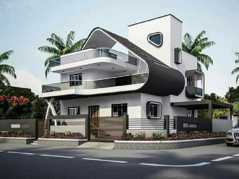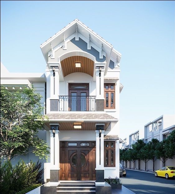 Mái bằng hiện đại kết hợp màu nâu với tổng thể màu trắng tạo nên sự hài hòa, giúp ngôi nhà trở nên nổi bật. Cổng nhà nên được thiết kế hài hòa với kiến trúc tổng thể, có thể làm bằng gỗ, sắt mỹ thuật, hoặc sự kết hợp của nhiều vật liệu để tạo ấn tượng.
