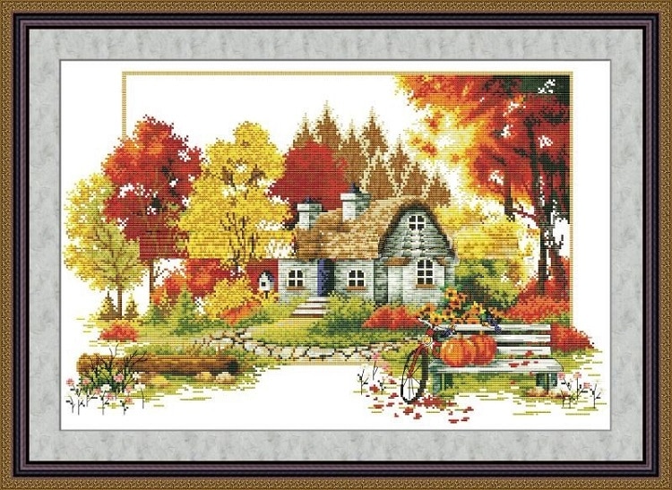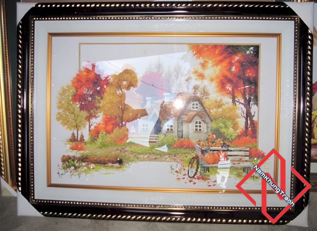 Hôm nay, mình quyết định tháo khung tranh ra để khoe với các bạn bức tranh thêu chữ thập mà mình vừa hoàn thành, mang tên “Rừng vàng mùa thu”. Đây thực sự là một tác phẩm ý nghĩa, không chỉ vì màu sắc rực rỡ mà còn vì mỗi điểm thêu đều chứa đựng tâm huyết của mình.