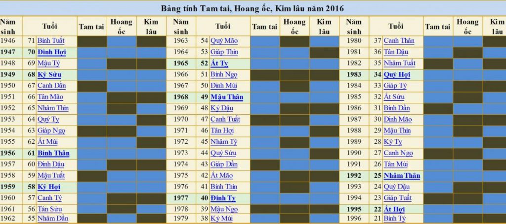 Năm 2016, với tuổi Canh Ngọ (1990), là một năm may mắn vì không phạm vào hạn Kim Lâu. Theo quy tắc tính tuổi Kim Lâu, ta lấy tuổi âm lịch chia cho 9, nếu không dư hoặc có kết quả là 1, 3, 6 hoặc 8 thì năm đó sẽ gặp hạn. Nhưng năm 2016, gia chủ 27 tuổi, nên có thể yên tâm tiến hành những việc lớn như xây dựng nhà cửa.