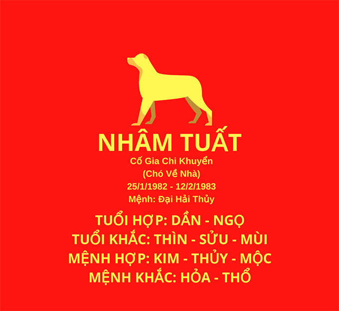 Người sinh năm 1982 thuộc tuổi Nhâm Tuất, mang mệnh Đại Hải Thủy và có nhiều đặc điểm nổi bật. Họ thường rất trung thực, kiên nhẫn và có tinh thần trách nhiệm cao trong mọi việc. Với tính cách này, những lĩnh vực như công nghệ thông tin, kinh doanh quán ăn hay nhà hàng sẽ phù hợp với họ. Ngành công nghệ thông tin, đặc biệt, đang phát triển mạnh mẽ và luôn cần những người có ý chí kiên cường như Nhâm Tuất.